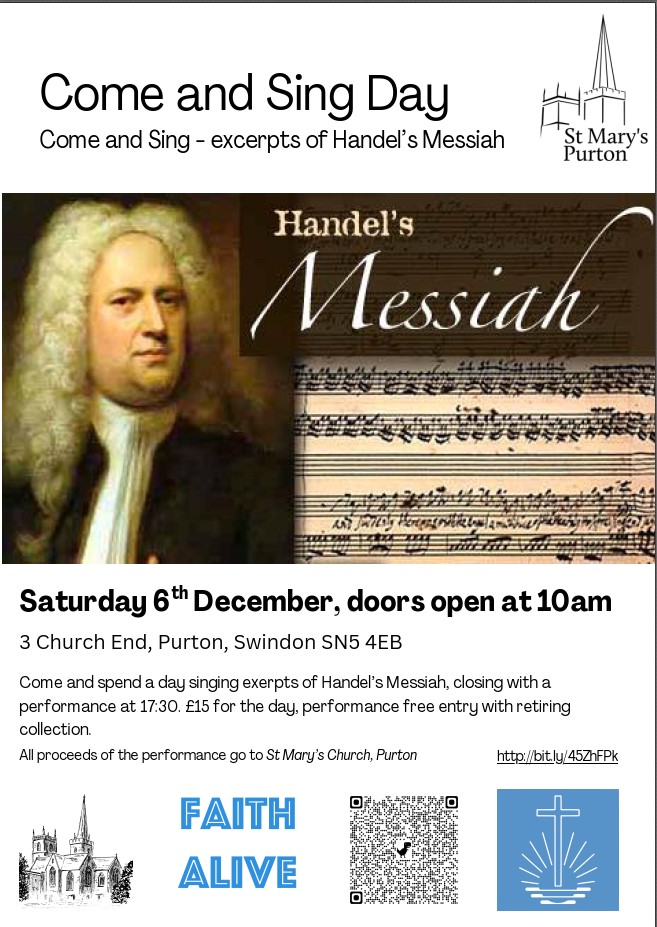 Join us for a joyous day at St Mary's Church, Purton as we sing choral excerpts from Handel's masterpiece, Messiah, together. Whether you're a seasoned singer or just love to belt out the Hallelujah chorus in the shower, this event is for you! Let's come together to celebrate the holiday season with beautiful music and good company. No auditions, no pressure, just pure musical fun. Mark your calendars and invite your friends!